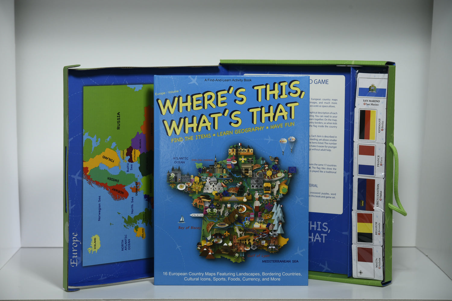 A fun carry-set for kids that includes Where's This, What's That activity book and Match This, Match That memory gtame.