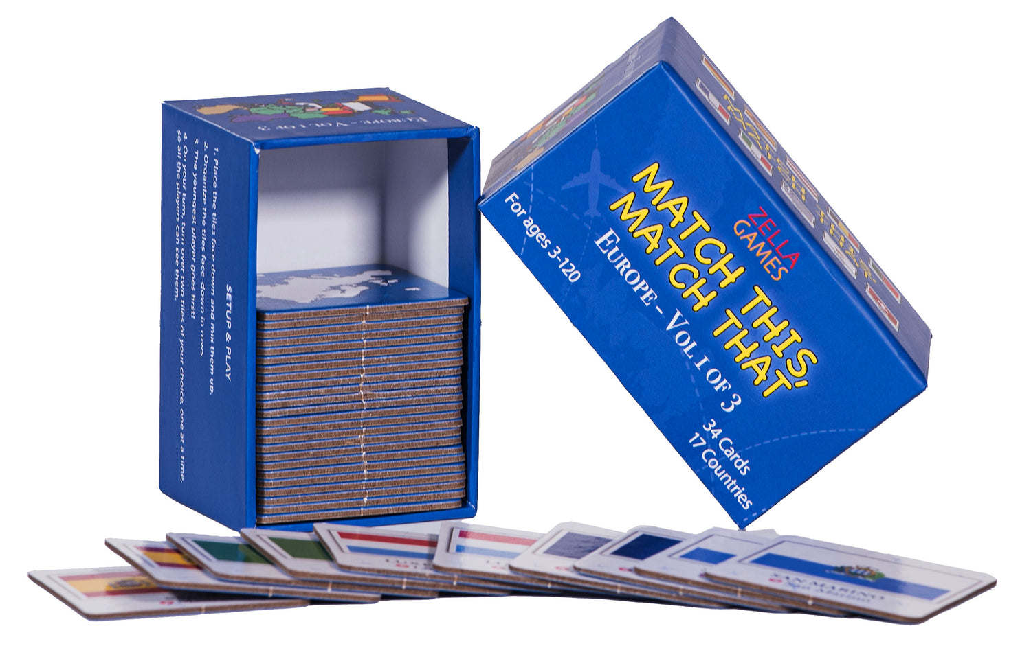 Challenge your kids to a game of Match This, Match That - a memory game that teaches country names, flags, and capitals.